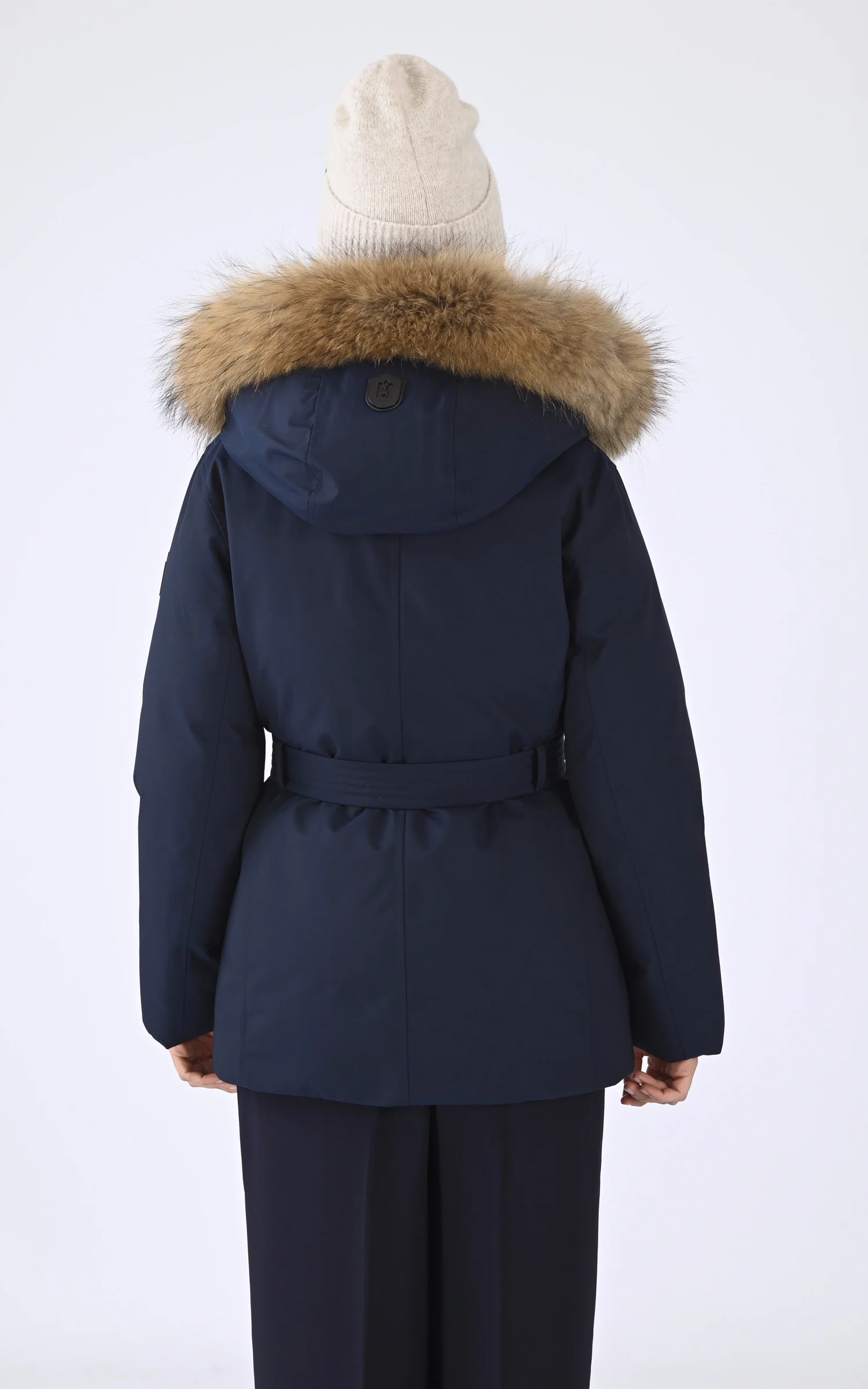 Capuche fixe ajustable bordée de fourrure de racoon Label Saga Fur amovible par pression