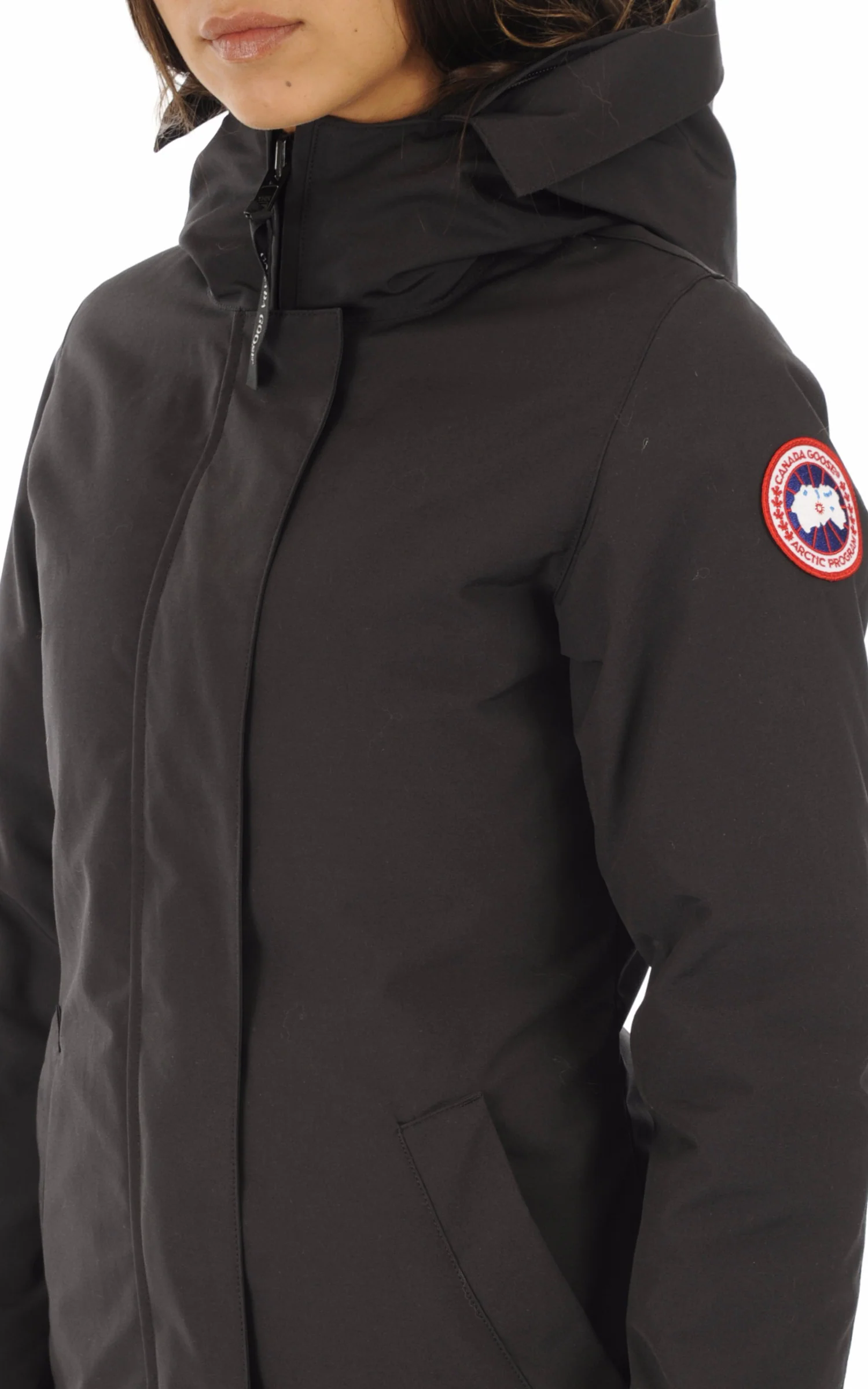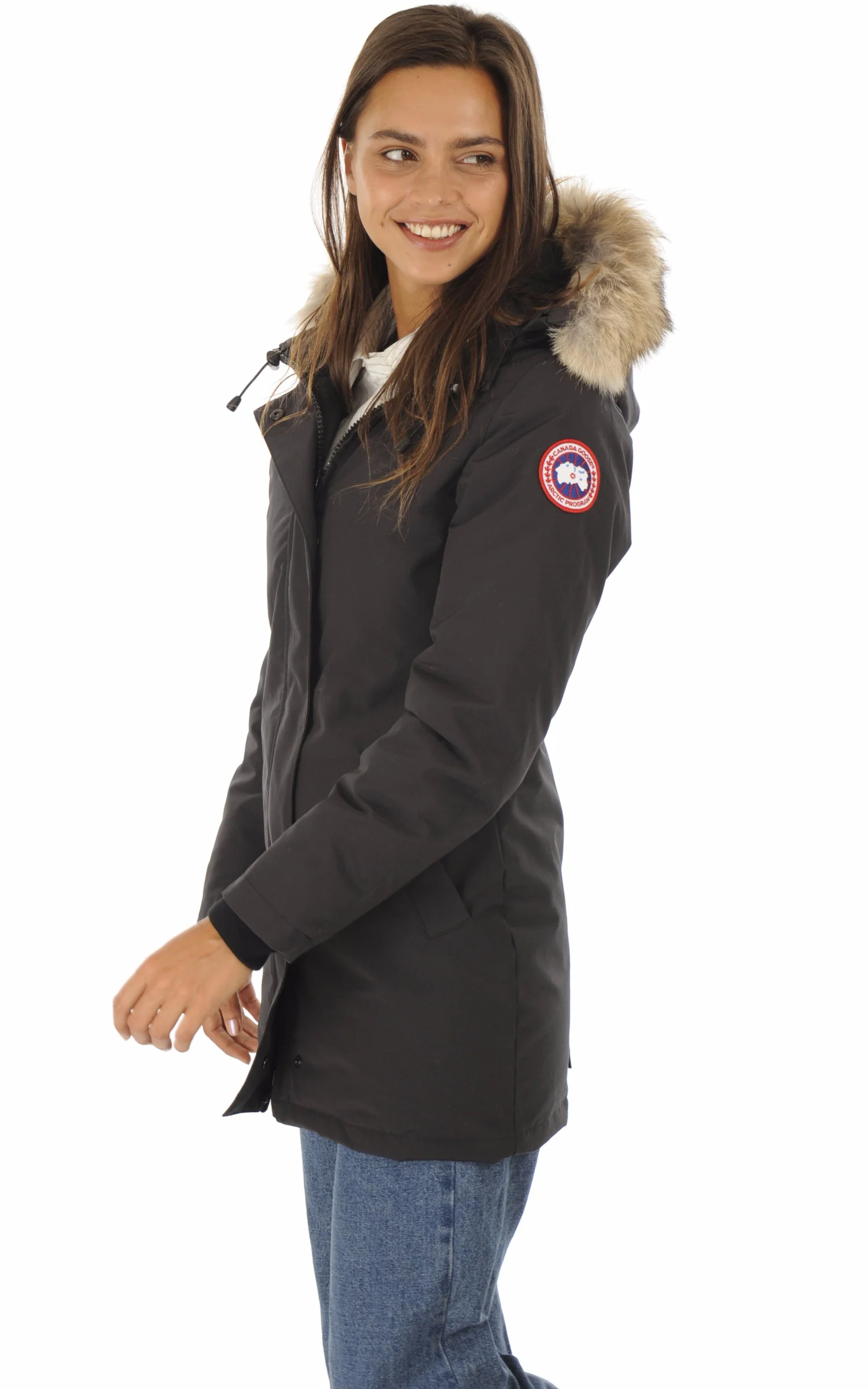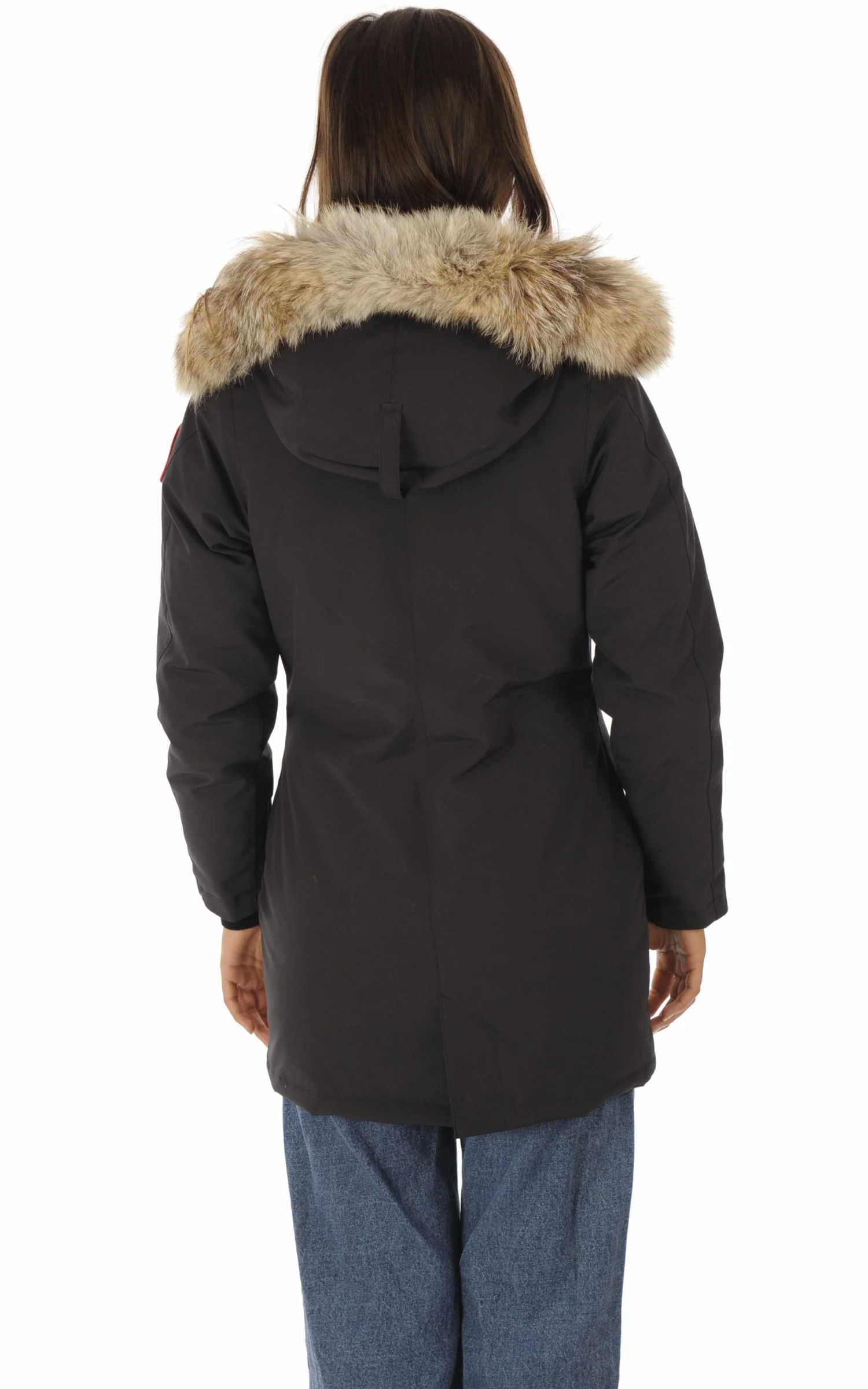 Capuche fixe bordée de fourrure de coyote amovible par zip