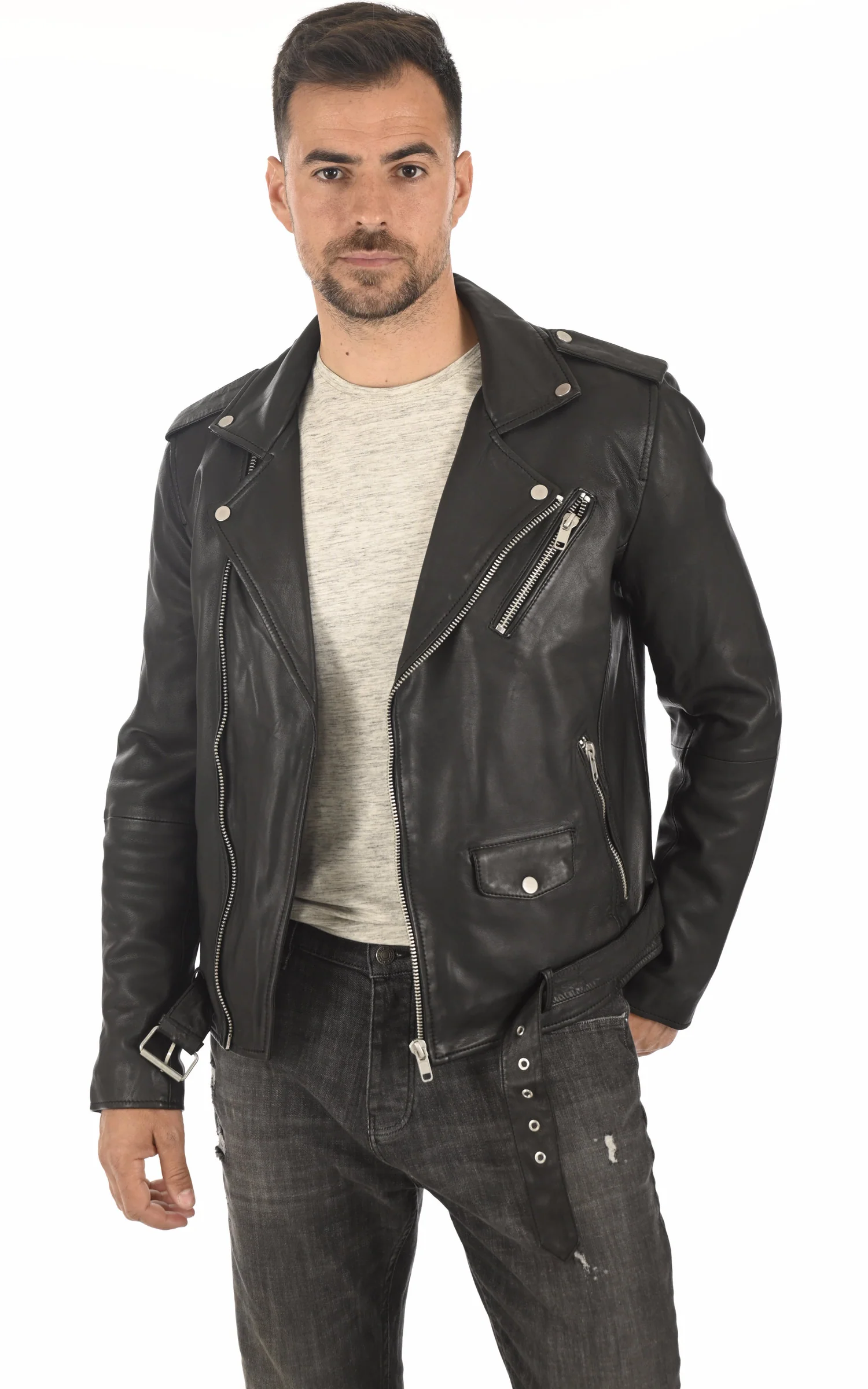 Blouson perfecto en cuir modèle Rocker de la marque Serge Pariente.