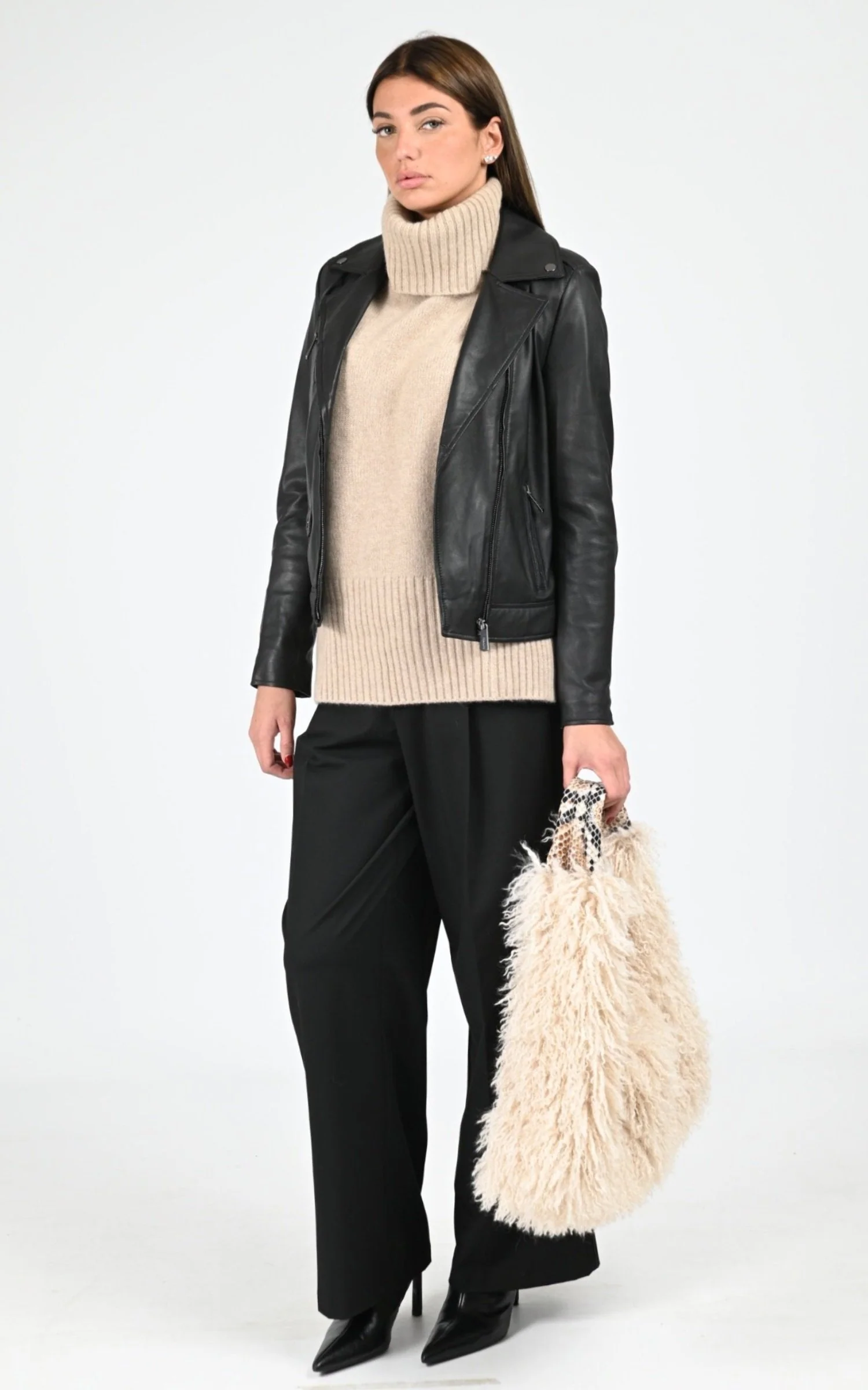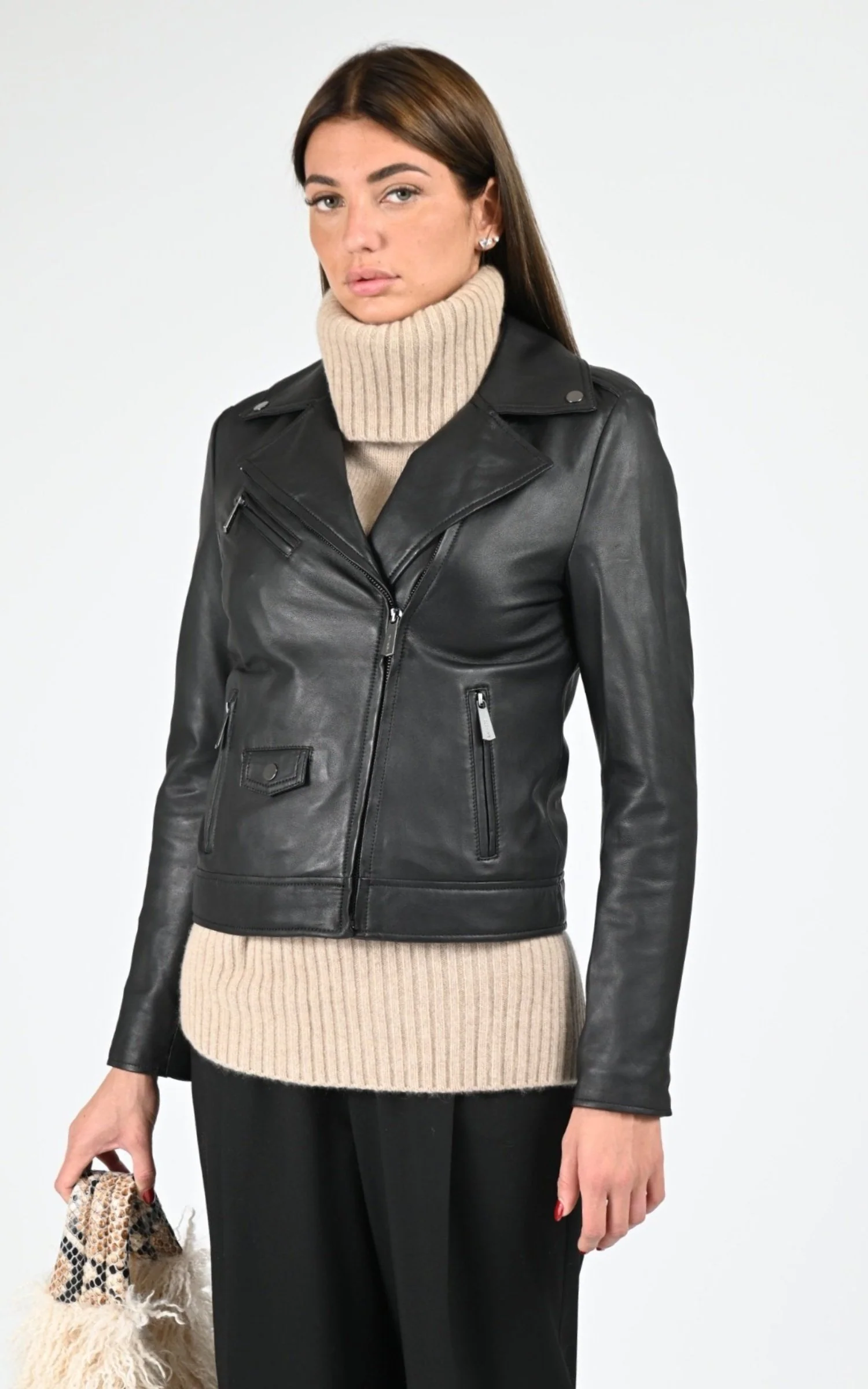 Blouson perfecto en cuir d’agneau modèle Samba de la marque Oakwood