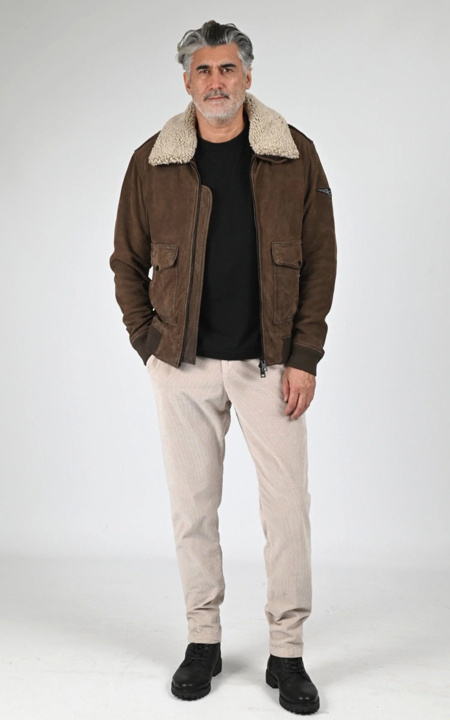 Blouson pilote en cuir d’agneau aspect velours modèle Gennaro de la marque Oakwood