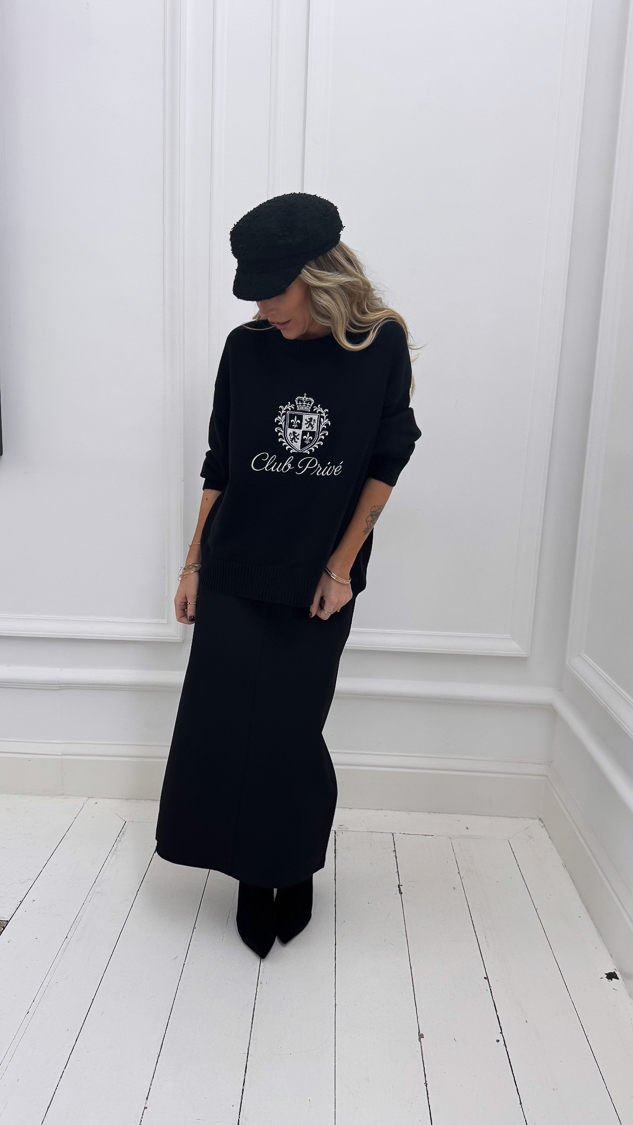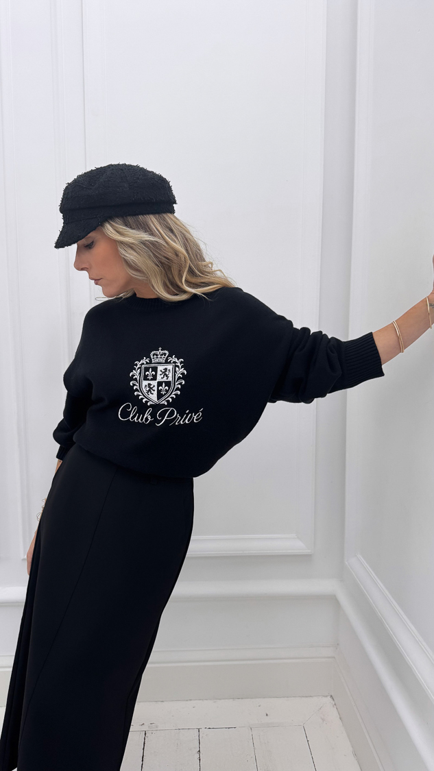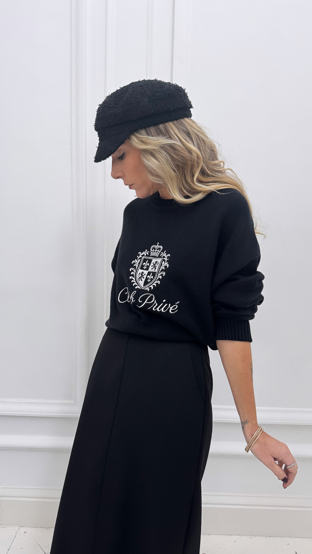 Le pull noir inscription brodée blanche “Club privé” et son écusson brodé sur le devant, sa maille souple et douce et son col rond!
