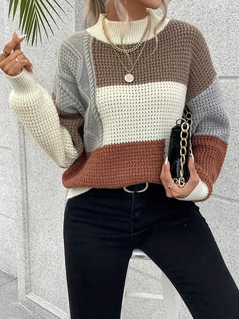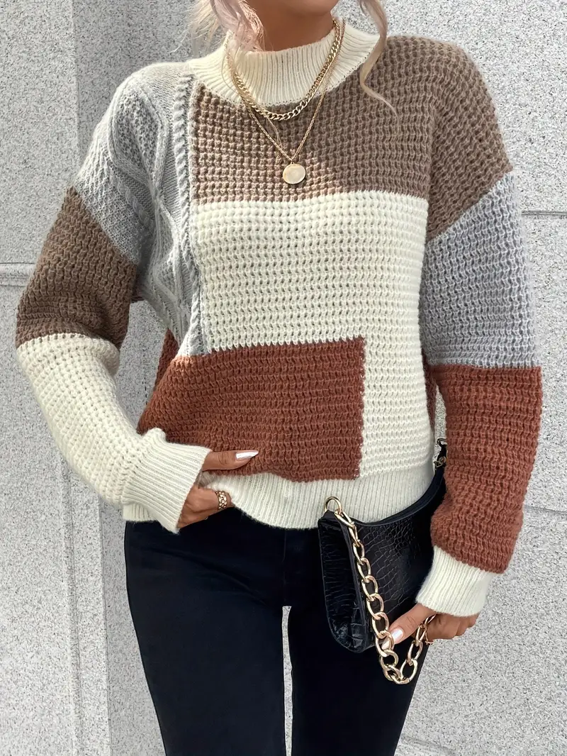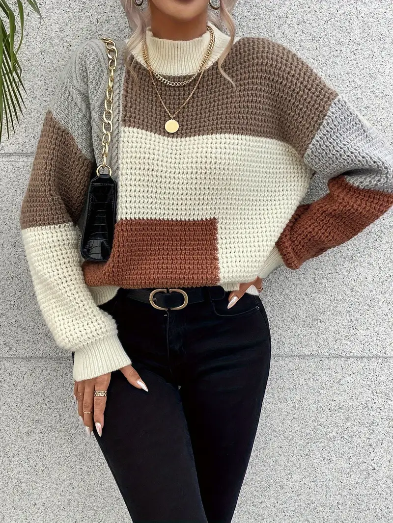 Pull chaud femme avec col montant, parfait pour affronter l’hiver avec style. Ce pull pour l’hiver en tricot allie élégance et confort, idéal pour rester au chaud tout en restant chic.