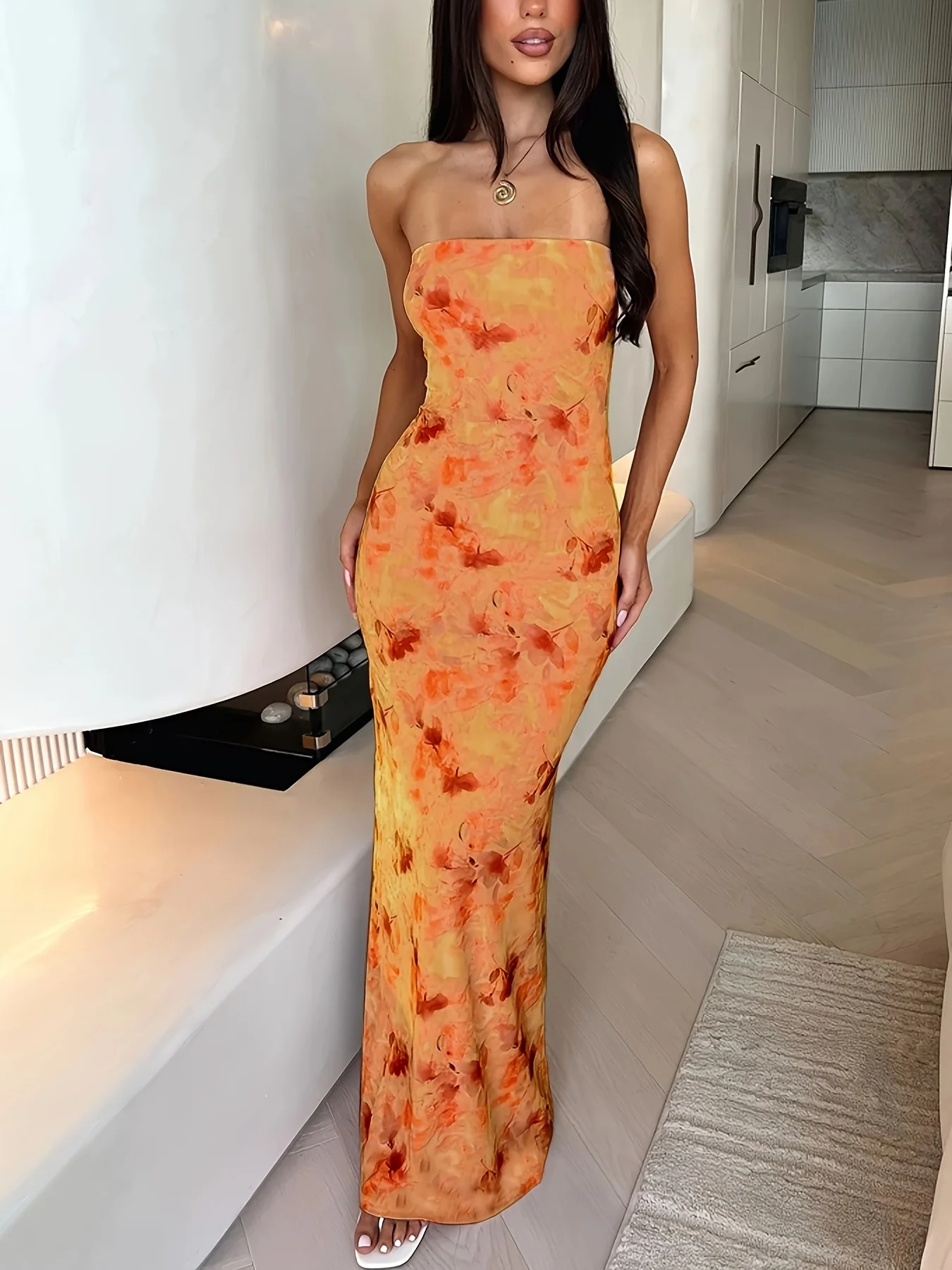 Découvrez la robe bustier longue fleurie femme, un modèle aérien et féminin qui sublime la silhouette grâce à ses détails fleuris et sa coupe ajustée.