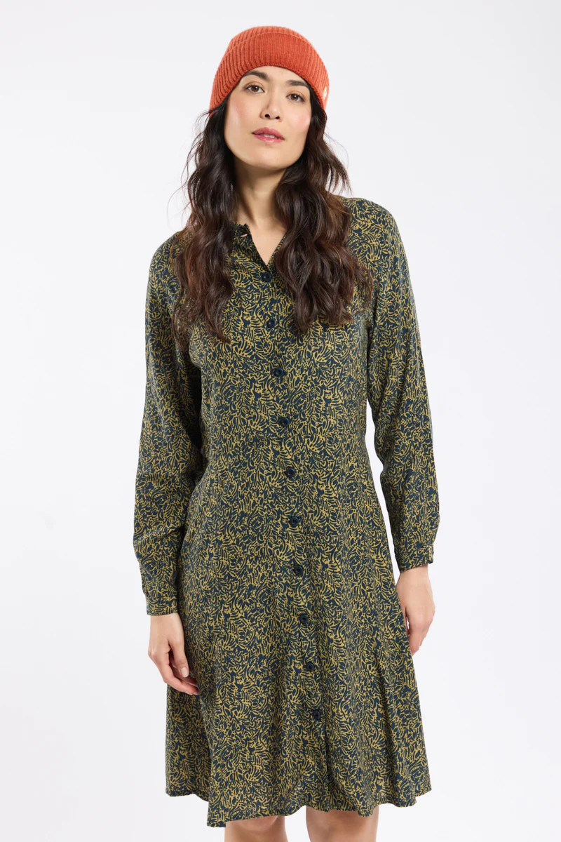 L’imprimé “feuillage” de cette robe chemise donne une silhouette tendance et féminine. A associer avec une paire de baskets pour un esprit sportswear. Le cupro est une matière respectueuse de l’environnement et biodégradable. Fibre artificielle obtenue à partir du coton, elle est plus respirante que celui-ci, très fluide et absorbante.