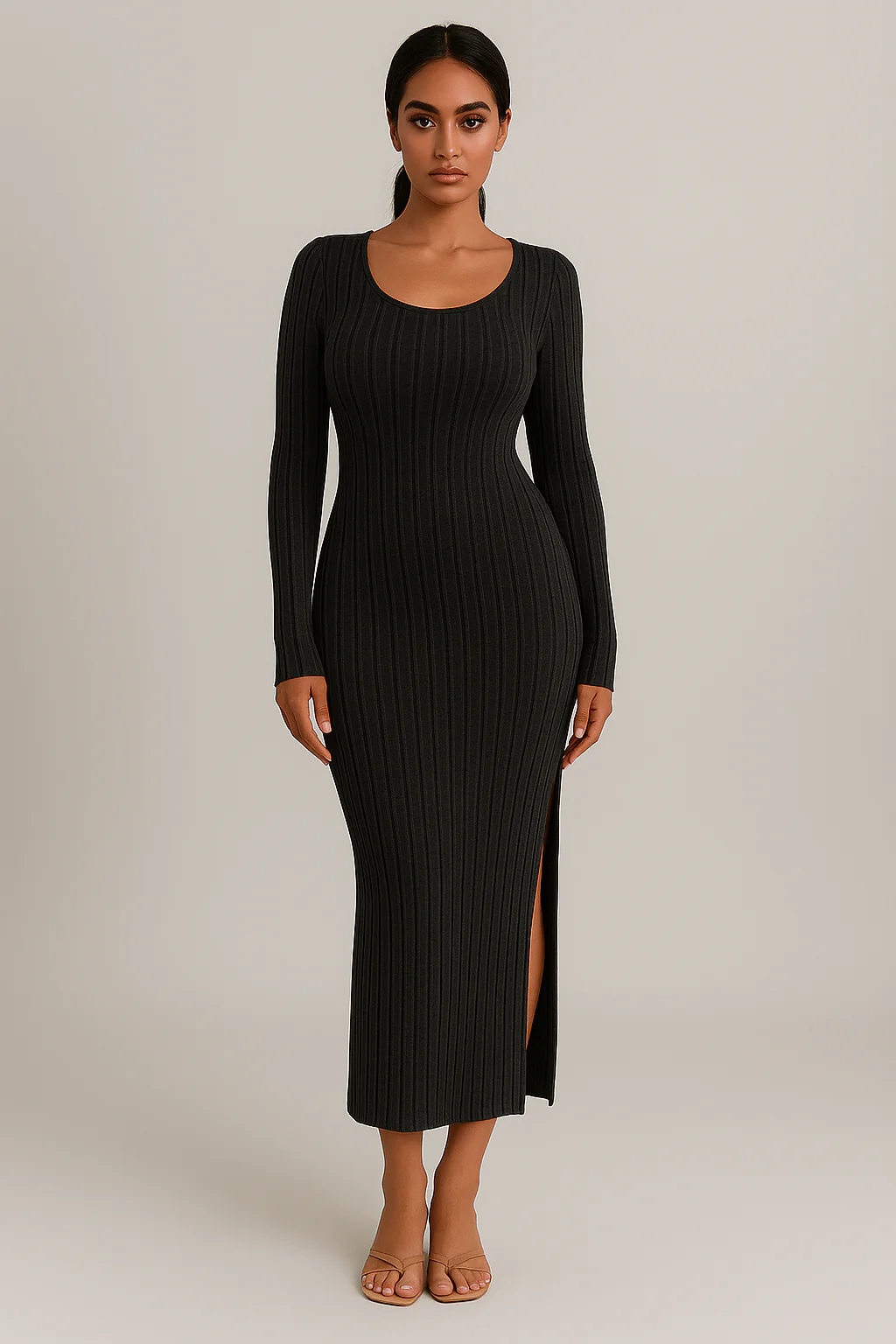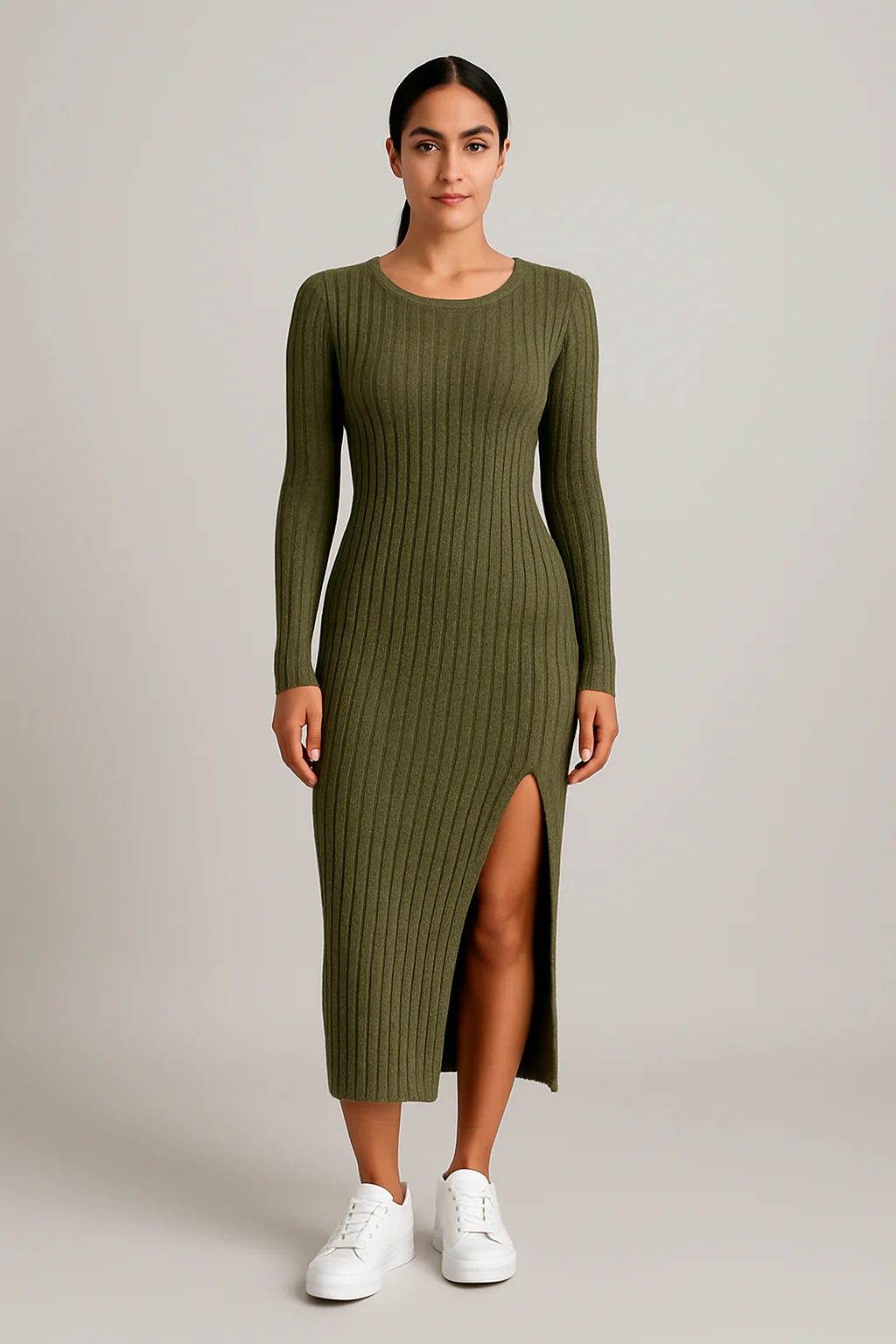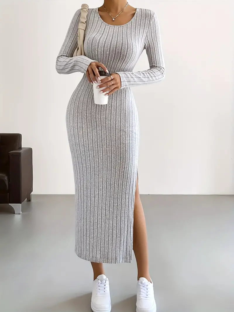 La robe côtelée à manches longues allie confort et élégance. Son tissu sculptant met en valeur la silhouette, tandis que les manches longues apportent chaleur et style. Parfaite pour l’automne et l’hiver, elle se porte facilement avec des bottes ou des baskets pour un look chic ou décontracté.