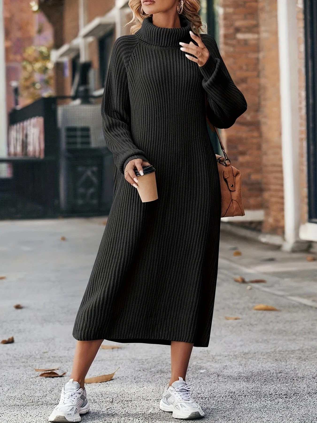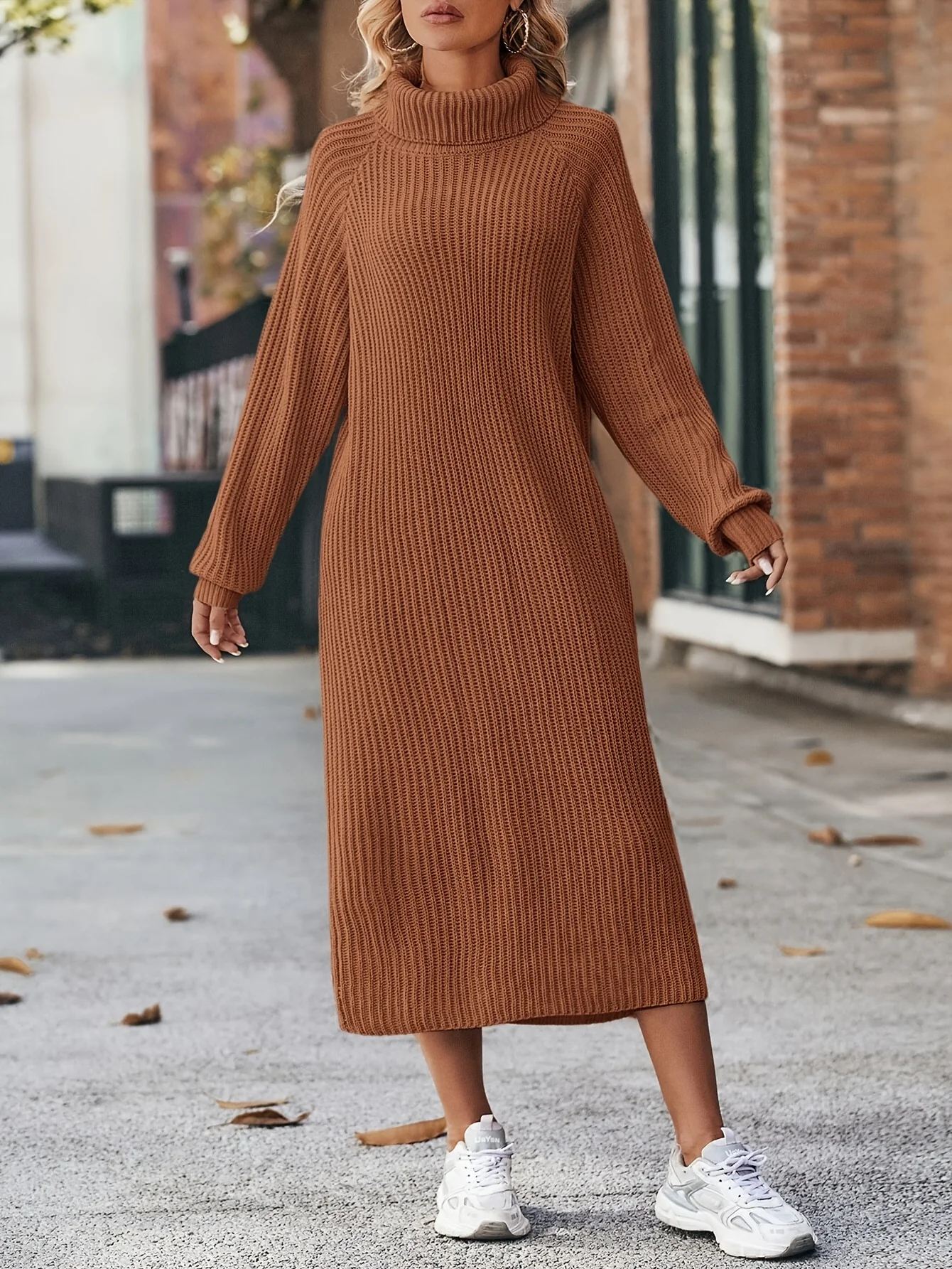 Robe pull longue femme en maille col roulé ample, chaude et décontractée. Une silhouette cocooning idéale pour affronter l’hiver avec douceur et style.