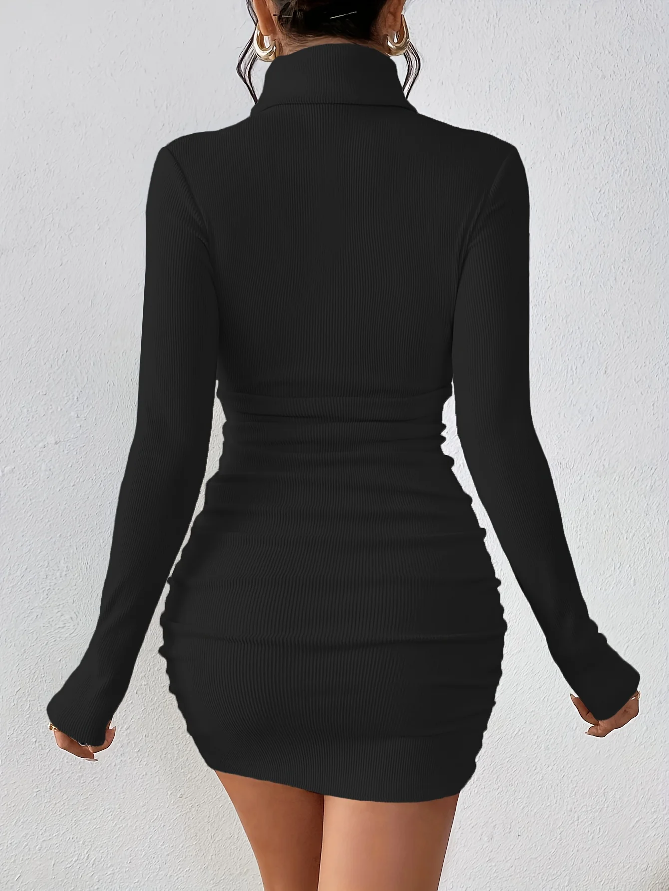 Robe pull moulante hiver femme à col roulé, à la fois chaude et élégante, parfaite pour sublimer la silhouette avec sa coupe ajustée et ses manches longues.