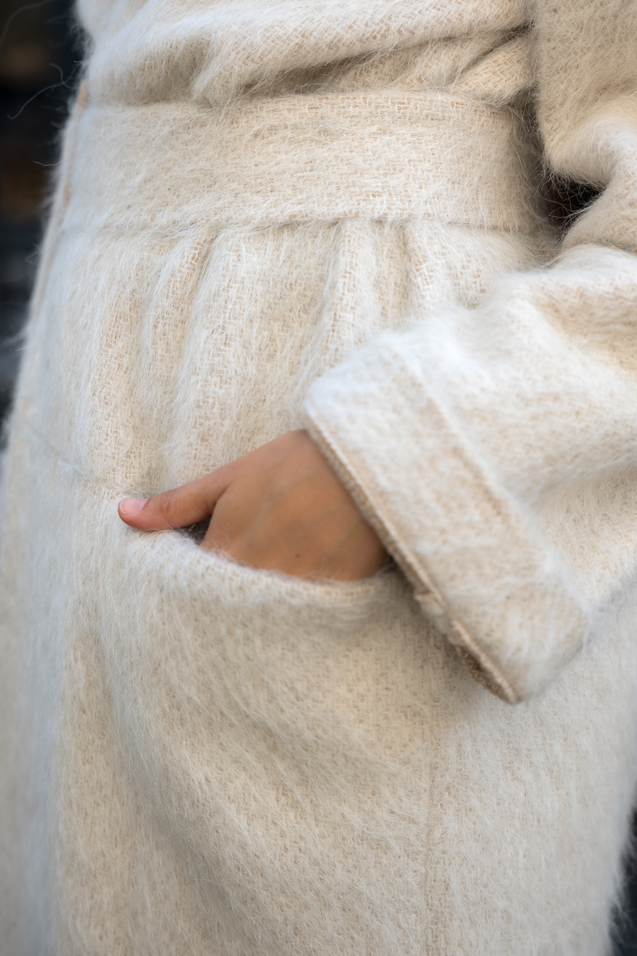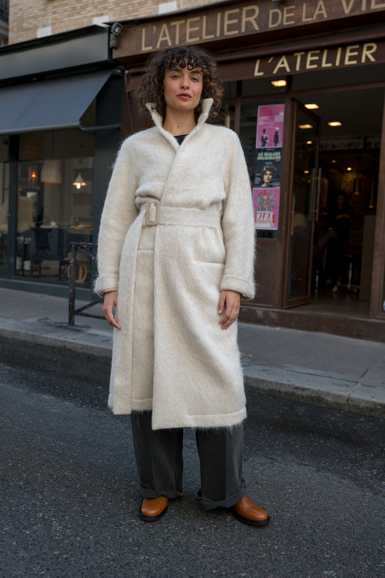 Garance porte le Stella long avec une paire de chaussures Homers de la nouvelle collection.