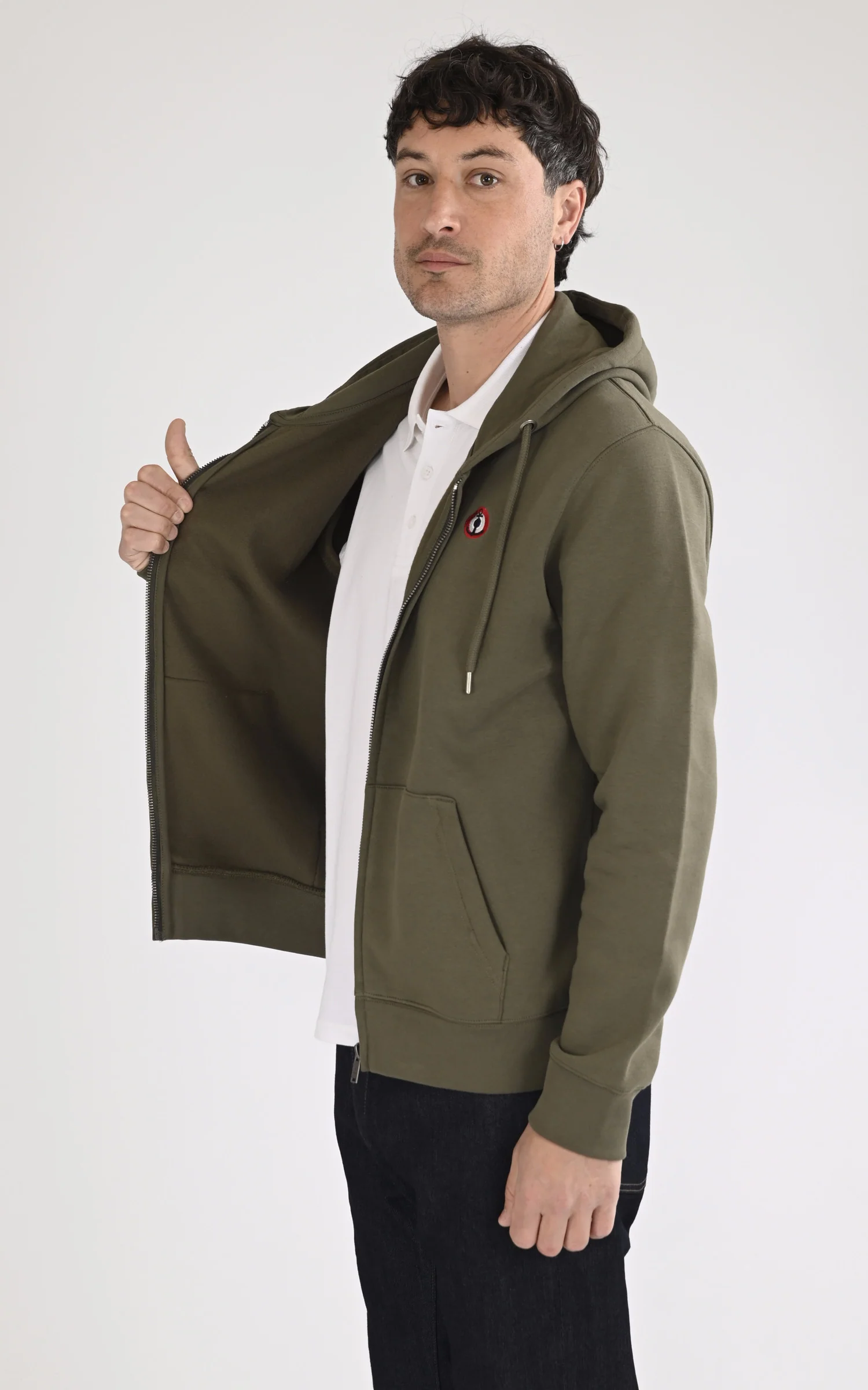 – Capuche dotée de cordons de serrage
