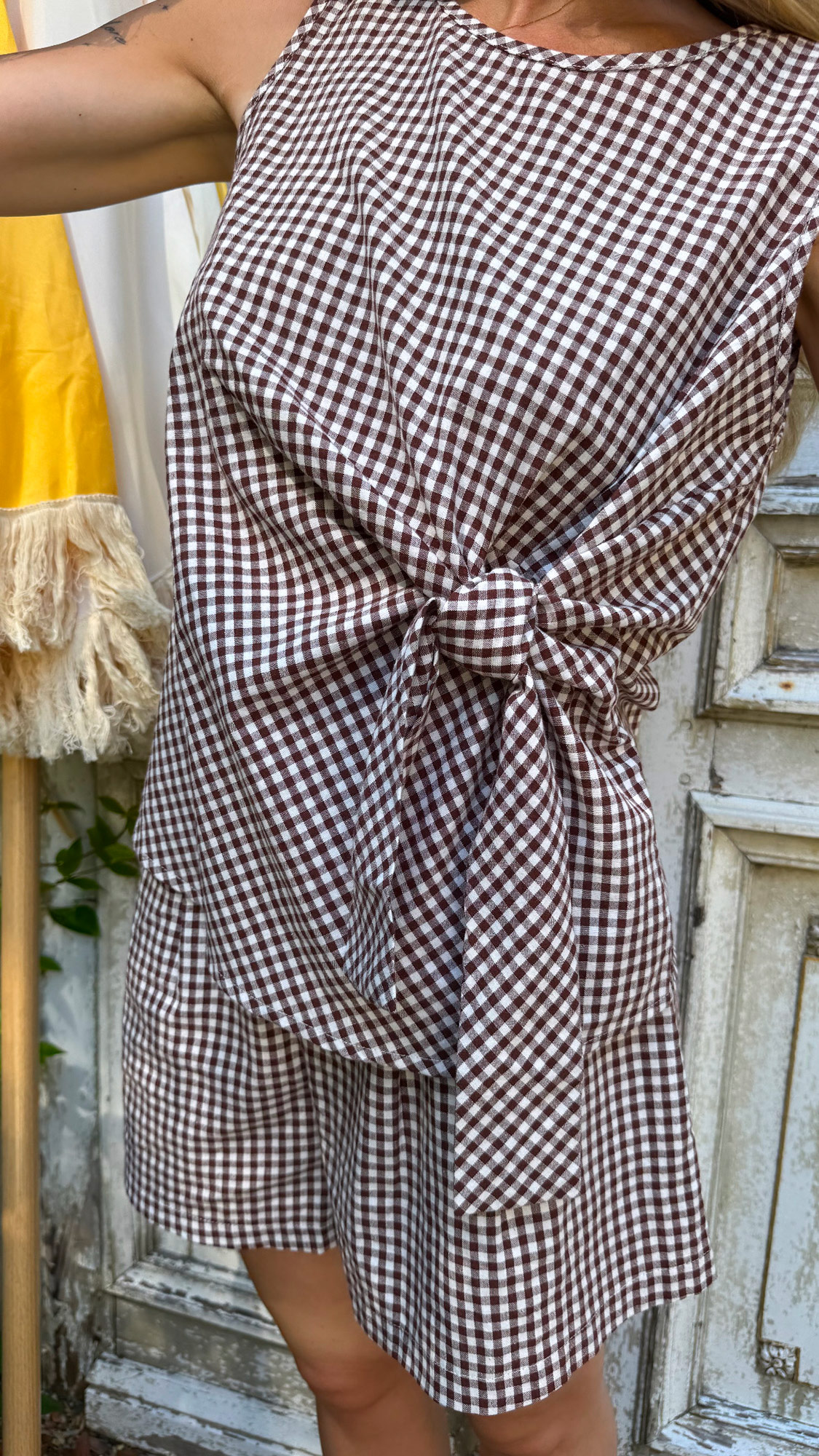 Craquant et facile à porter, ce petit top vichy marron et blanc mise sur le charme rétro. à associer le short pour un look estival frais et stylé !
