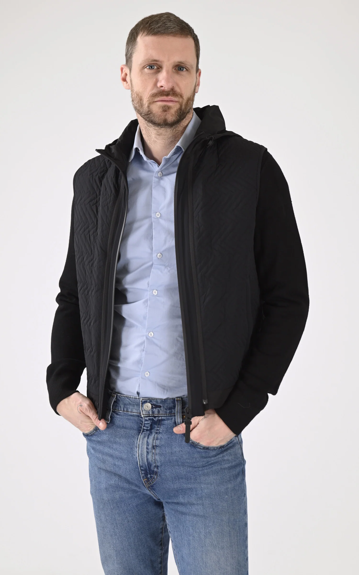 Veste modèle BARRETTModèle 3 en 1 : peut se porter en doudoune sans manche, en veste à capuche, ou en association des deuxCapuche fixe avec cordons de serragePoignets jersey élastique2 poches extérieures zipFermeture par zip