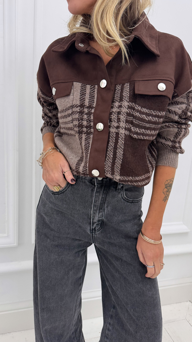 Originale et texturée, cette veste bi-matière au design effet gilet séduit par ses carreaux aux nuances de marron et ses deux poches à rabat. Une pièce au style travaillé, parfaite pour structurer vos looks d’automne.