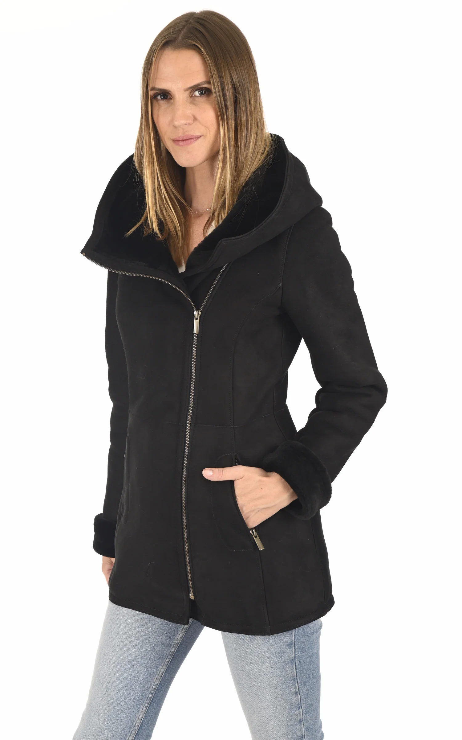 – Revers poignets et hanches bordés de laine
