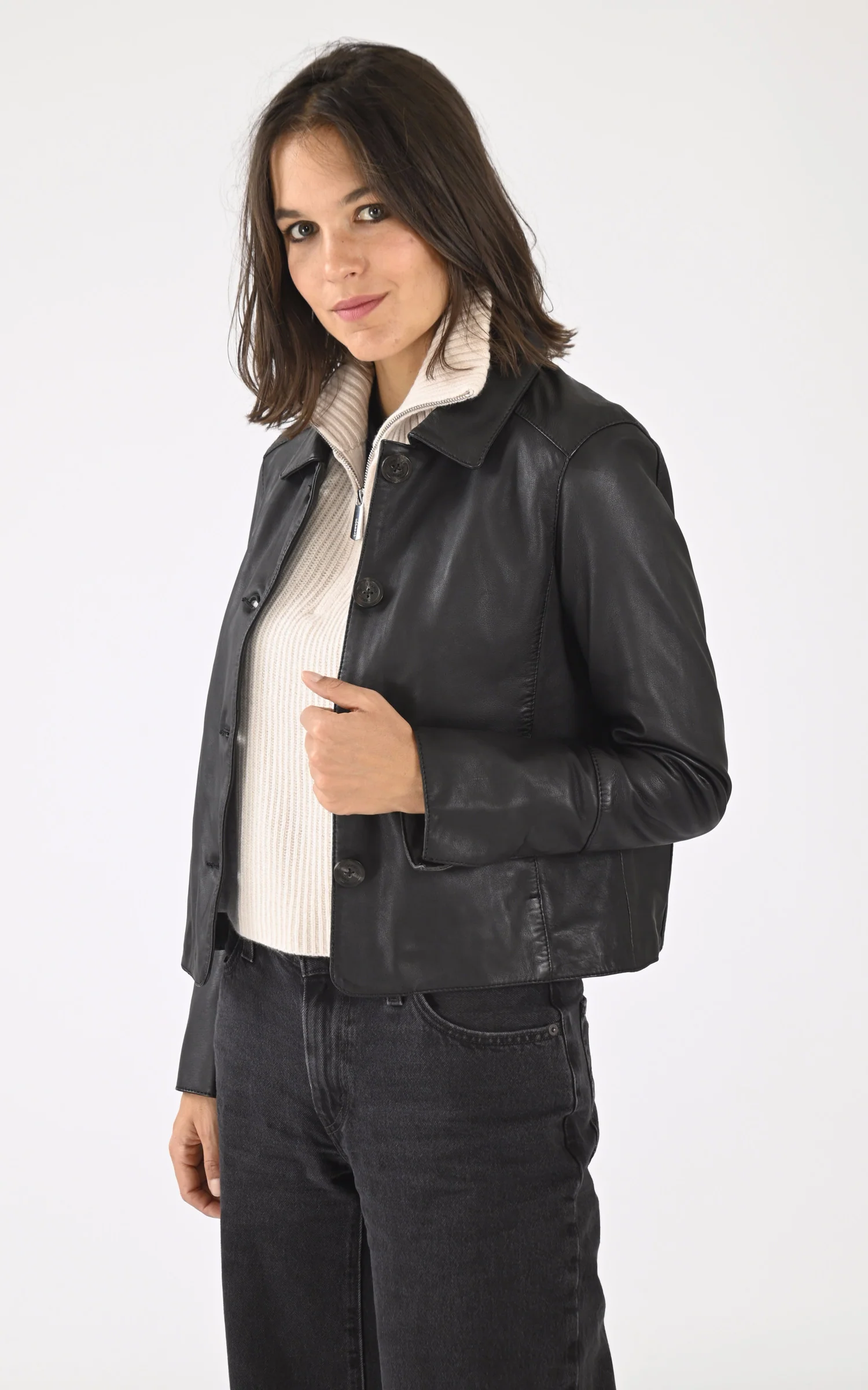 Veste en cuir d’agneau modèle Leslie de la marque Oakwood
