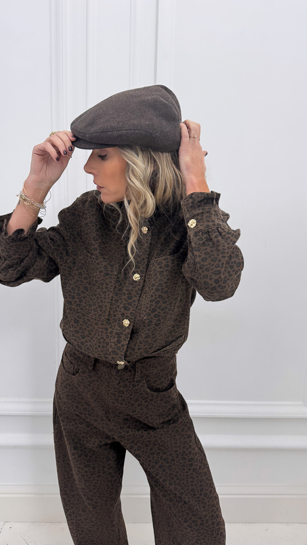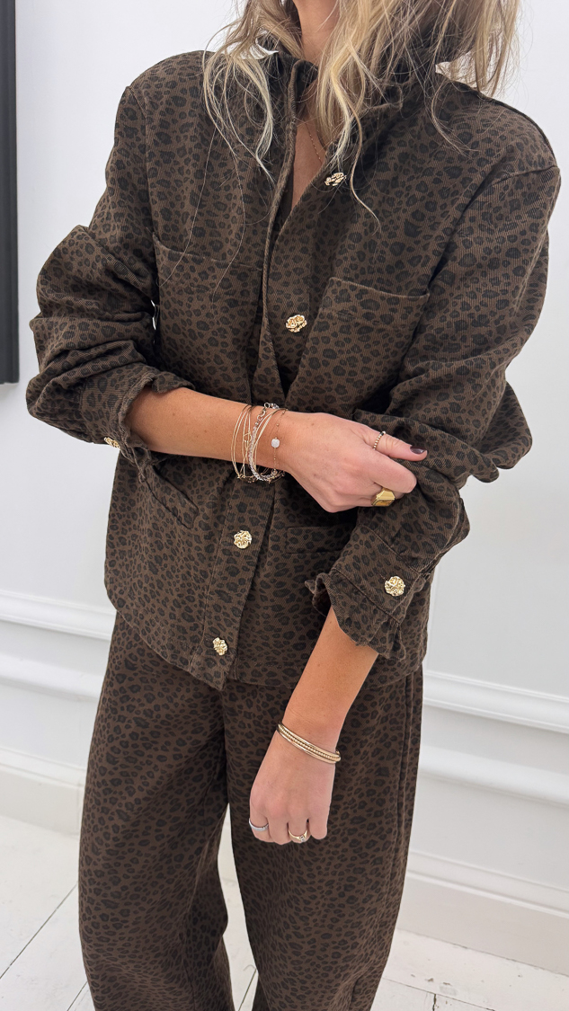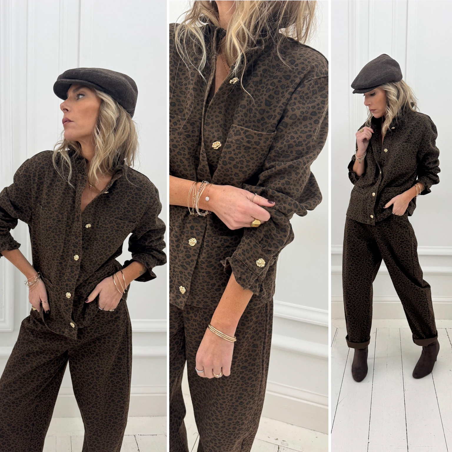 Cette veste en jean au motif léopard marron à taches noires, rehaussée de boutons dorés, d’un col montant et de deux poches carrées avec un rabat, s’accordera parfaitement avec notre pantalon en jean au motif léopard. Une pièce forte et stylée, parfaite pour un look affirmé et tendance !