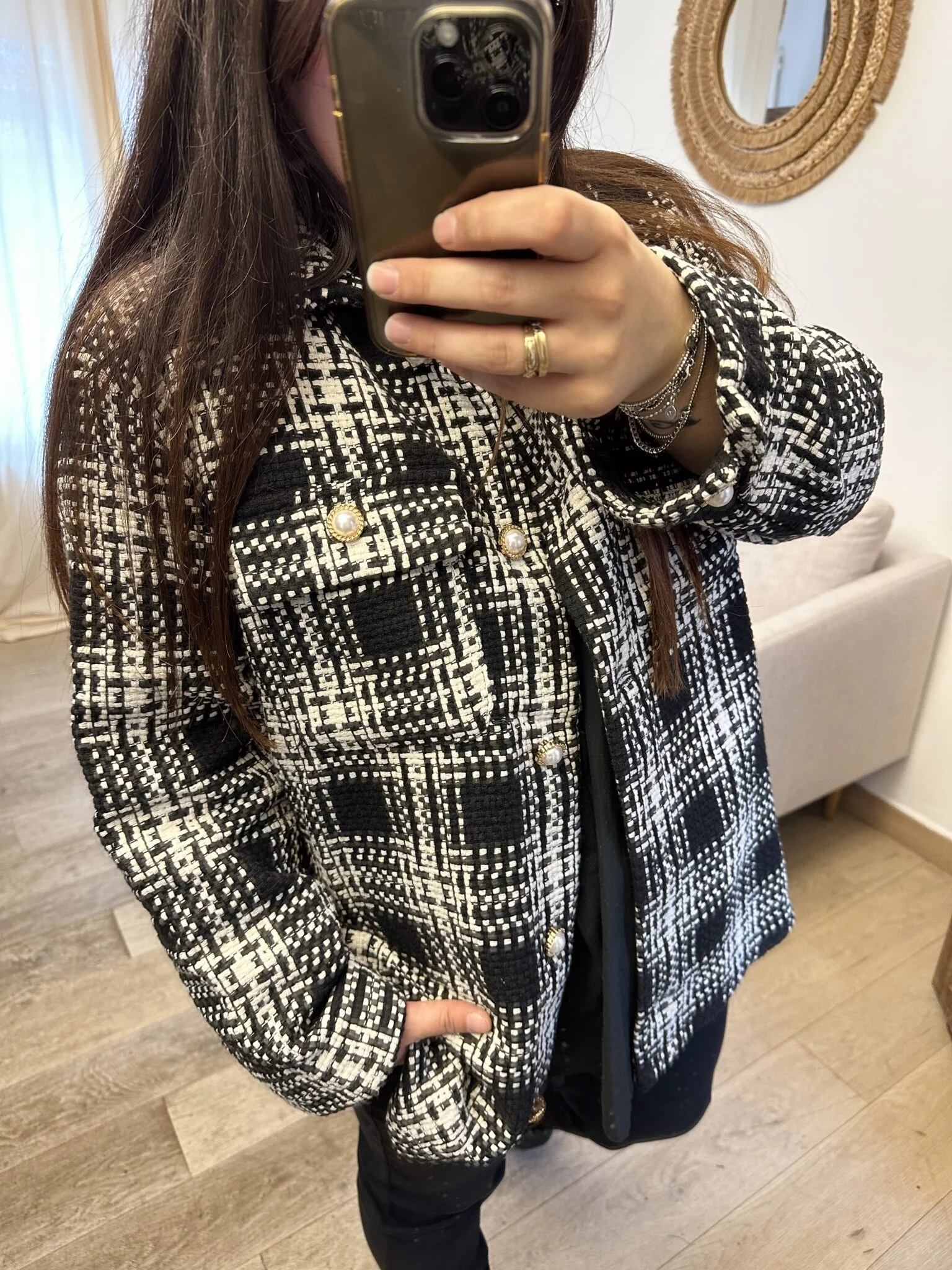 Le model porte habituellement une taille 44/46 et mesure 1m60. Elle porte la veste en taille 46.