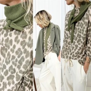 Écharpe fine kaki en maille