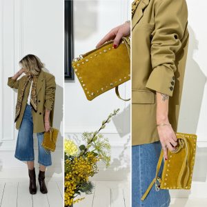 Sac pochette ocre en cuir clouté