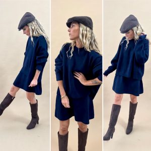 Ensemble jupe et pull bleu marine