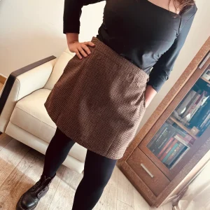 Jupe courte à carreaux marron