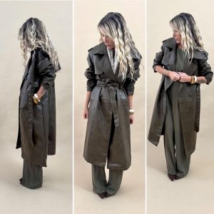 Trench long kaki simili cuir