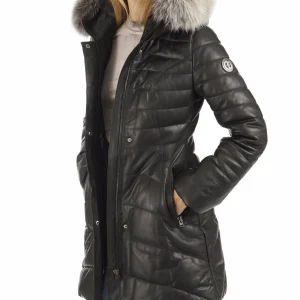 Veste à capuche Irene cuir noir