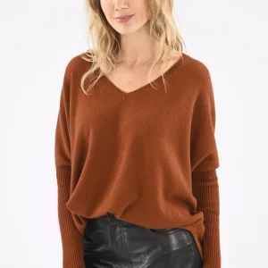 Pull col V cachemire fauve