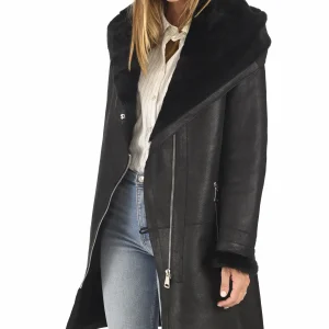 Manteau peau lainée noir