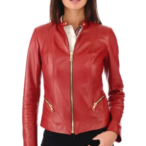 Blouson cintré cuir rouge