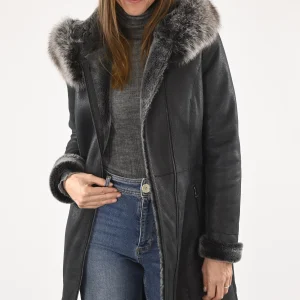 Manteau ajusté peau lainée Selvita noir