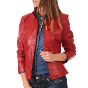 Blouson ajusté cuir rouge