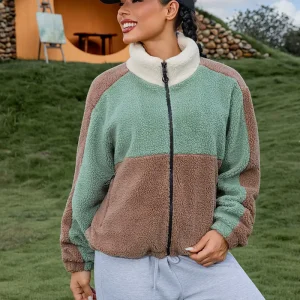 Manteau d’hiver épais avec bloc de couleurs