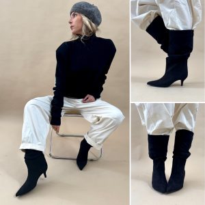 Bottines noires froncées suédine