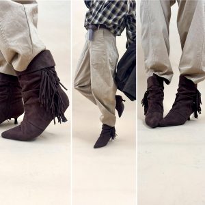 Bottines marron suédine à franges