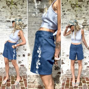 Short denim broderies blanches