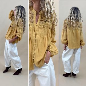 Blouse ocre détails ajourés