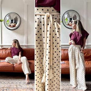 Pantalon crème pois cordon