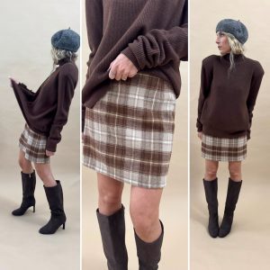 Jupe courte à carreaux marron