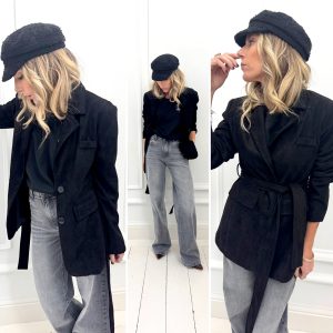 Blazer noir en daim ceinturé