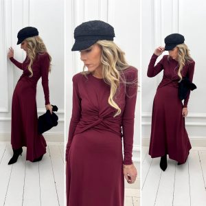 Robe longue bordeaux nouée