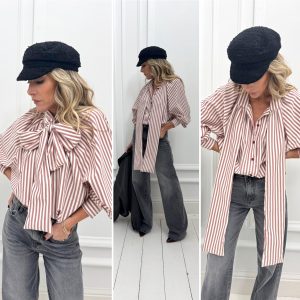 Chemise merlot à rayures blanches