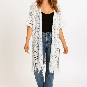 Kimono de plage en dentelle ajourée – Élégance estivale et confort aérien