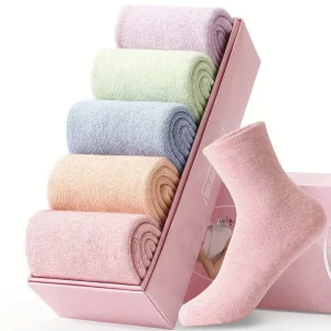 Chaussettes d’hiver femme nordiques en maille épaisse – 5 Paires